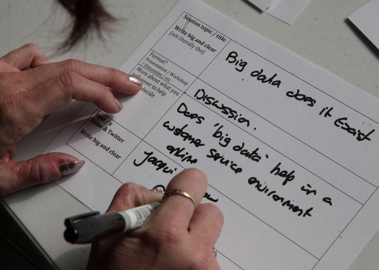 I’ve always slightly broken the rules of a traditional barcamp by having a defined theme (tech & non-profits) and curating the sessions rather than just allowing the timetable board to be filled up directly. Following the mammoth curation session last year I decided to try just letting the participants free like the traditional format. To support this I creating more structured session cards (see pic) to guide people making suggestions.
